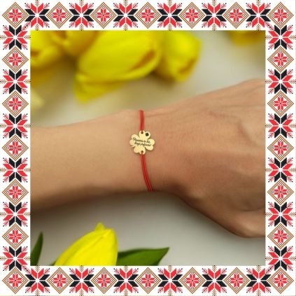 Bratara martisor cu pandantiv din inox in forma de trifoi cu patru foi de culoare aurie gravat cu ghiocel si mesajul Primavara in dar, draga profesoara! Otelul inoxidabil cunoscut si ca inox este un material foarte rezistent ce nu oxideaza, ceea ce a dus la utilizarea din ce in ce mai frecventa de catre bijutieri in creatiile lor. Ofera un martisor norocos ce se preteaza a fi purtat to anul! Daruieste martisoare cu semnificatie!