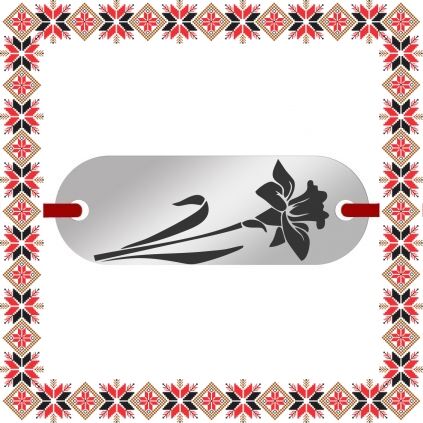 Bratara martisor cu pandantiv in forma de placuta ovala de culoare argintie gravata cu floare de narcisa si snur elastic rosu. Daruieste flori de martisor! Un martisor norocos si incarcat de semnificatie ce se preteaza a fi purtat to anul!