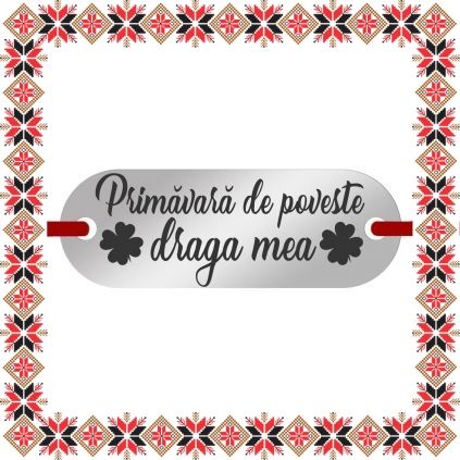 Bratara martisor cu pandantiv in forma de placuta ovala de culoare argintie gravata cu trifoi norocos si urarea Primavara de poveste, draga mea! Daruieste martisoare personalizate! Un martisor norocos si incarcat de semnificatie ce se preteaza a fi purtat to anul!