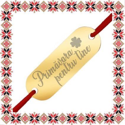 Bratara martisor cu pandantiv in forma de placuta ovala de culoare aurie gravata cu trifoi si urarea Primavara pentru tine! Daruieste noroc de martisor! Un martisor norocos si incarcat de semnificatie ce se preteaza a fi purtat to anul!