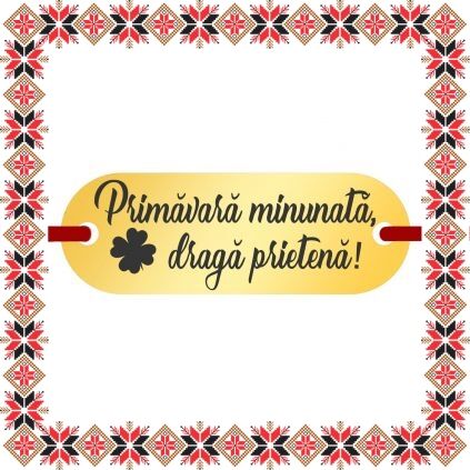 Bratara martisor cu pandantiv in forma de placuta ovala de culoare aurie gravata cu trifoi norocos si urarea Primavara minunata, draga prietena! Daruieste martisoare personalizate! Un martisor norocos si incarcat de semnificatie ce se preteaza a fi purtat to anul!