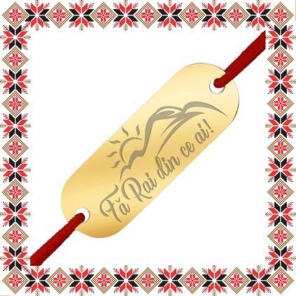 Bratara martisor cu pandantiv in forma de placuta ovala de culoare aurie gravata cu mesajul Fa Rai din ce ai si snur elastic rosu. Daruieste recunostinta de martisor! Ofera un martisor norocos ce se preteaza a fi purtat to anul! Daruieste martisoare cu semnificatie!