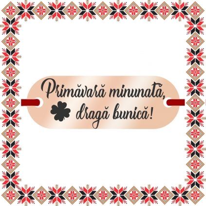 Bratara martisor cu pandantiv in forma de placuta ovala de culoare rose gold gravata cu trifoi norocos si urarea Primavara minunata, draga bunica! Daruieste martisoare personalizate! Un martisor norocos si incarcat de semnificatie ce se preteaza a fi purtat to anul!
