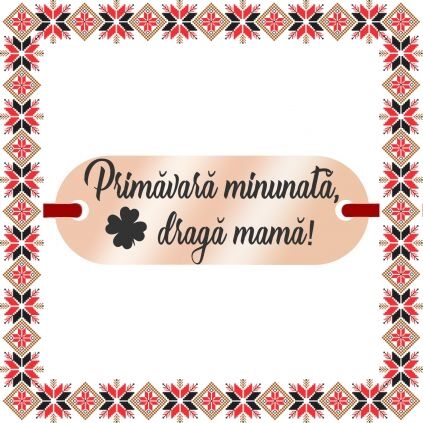 Bratara martisor cu pandantiv in forma de placuta ovala de culoare rose gold gravata cu trifoi norocos si urarea Primavara minunata, draga mama! Daruieste martisoare personalizate! Un martisor norocos si incarcat de semnificatie ce se preteaza a fi purtat to anul!