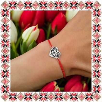 Bratara martisor cu pandantiv de inox in forma de inima de culoare argintie gravata cu inima cu flori motive traditionale romanesti. Daruieste traditie de martisor! Un martisor norocos si incarcat de semnificatie ce se preteaza a fi purtat to anul!