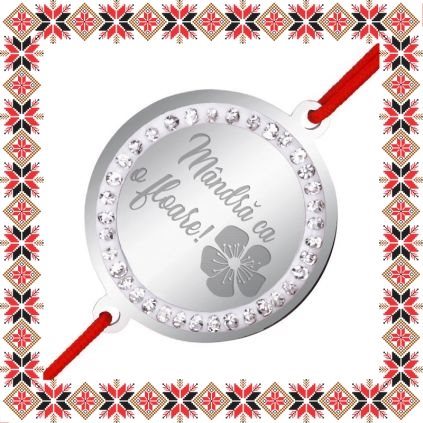 Martisor Bratara Inox Banut Pietre Mandra Floare Argintiu