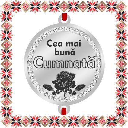 Bratara martisor cu pandantiv de inox in forma de banut de culoare argintie cu pietre multifatetate transparente, gravata cu floare de trandafir si mesajul Cea mai buna cumnata! Alege un martisor realizat din otel inoxidabil pentru ca primitoarea il va putea purta tot anul, fa-o sa zambeasca odata cu venirea primaverii!