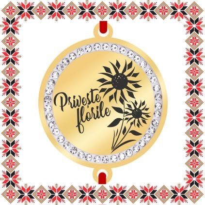 Bratara martisor cu pandantiv de inox in forma de banut de culoare aurie cu pietre multifatetate transparente, gravata cu flori si mesajul Priveste Florile. Alege un martisor realizat din otel inoxidabil pentru ca primitoarea il va putea purta tot anul, fa-o sa zambeasca odata cu venirea primaverii!