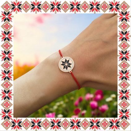 Martisor Bratara Inox Banut Pietre Floare Motive Traditionale Rose Gold