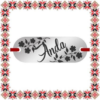 Bratara martisor cu pandantiv de inox in forma de placuta ovala de culoare argintie gravata cu crengute de flori si numele doamnei dragi din viata ta, Anda. Daruieste martisoare personalizate! Alege un martisor realizat din otel inoxidabil pentru ca primitoarea il va putea purta tot anul, fa-o sa zambeasca odata cu venirea primaverii!