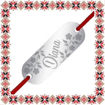 Bratara martisor cu pandantiv de inox in forma de placuta ovala de culoare argintie gravata cu crengute de flori si numele doamnei dragi din viata ta, Diana. Daruieste martisoare personalizate! Alege un martisor realizat din otel inoxidabil pentru ca primitoarea il va putea purta tot anul, fa-o sa zambeasca odata cu venirea primaverii!