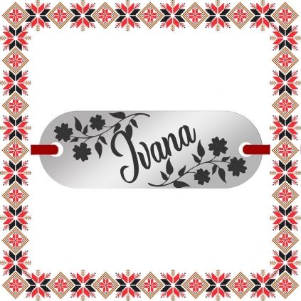 Bratara martisor cu pandantiv de inox in forma de placuta ovala de culoare argintie gravata cu crengute de flori si numele doamnei dragi din viata ta, Ivana. Daruieste martisoare personalizate! Alege un martisor realizat din otel inoxidabil pentru ca primitoarea il va putea purta tot anul, fa-o sa zambeasca odata cu venirea primaverii!