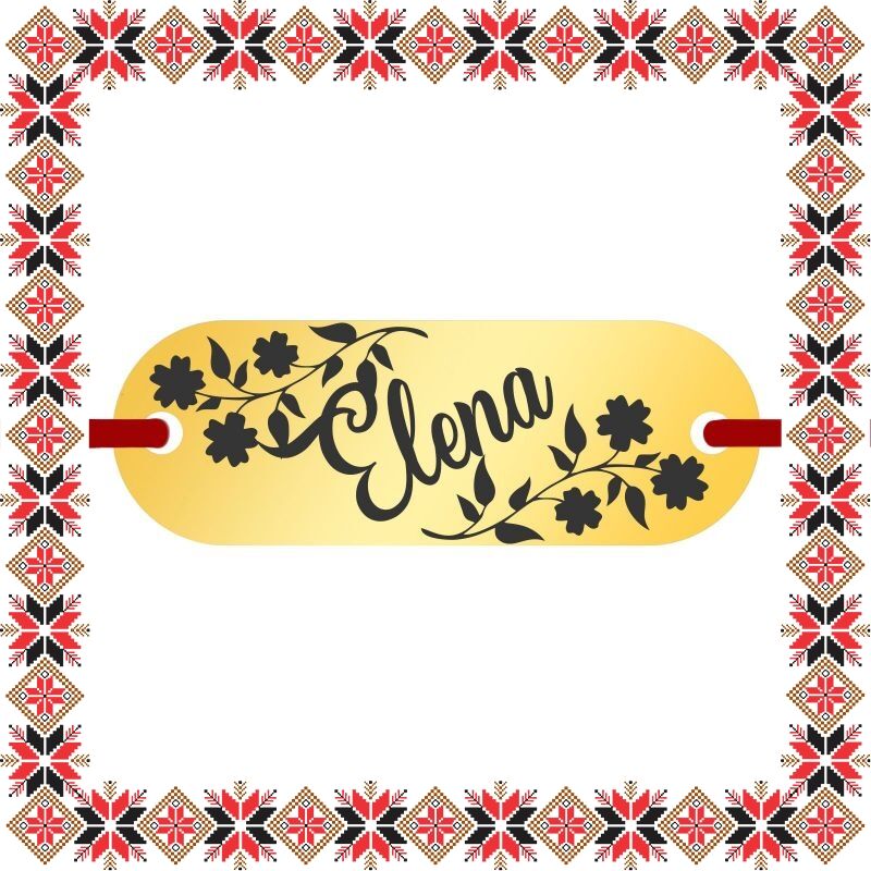 Bratara martisor cu pandantiv de inox in forma de placuta ovala de culoare aurie gravata cu crengute de flori si numele doamnei dragi din viata ta, Elena. Daruieste martisoare personalizate! Alege un martisor realizat din otel inoxidabil pentru ca primitoarea il va putea purta tot anul, fa-o sa zambeasca odata cu venirea primaverii!