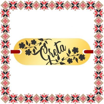 Bratara martisor cu pandantiv de inox in forma de placuta ovala de culoare aurie gravata cu crengute de flori si numele doamnei dragi din viata ta, Greta. Daruieste martisoare personalizate! Alege un martisor realizat din otel inoxidabil pentru ca primitoarea il va putea purta tot anul, fa-o sa zambeasca odata cu venirea primaverii!