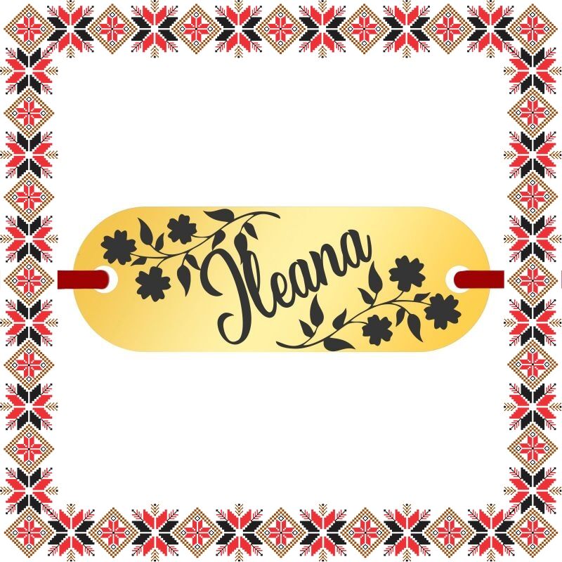Bratara martisor cu pandantiv de inox in forma de placuta ovala de culoare aurie gravata cu crengute de flori si numele doamnei dragi din viata ta, Ileana. Daruieste martisoare personalizate! Alege un martisor realizat din otel inoxidabil pentru ca primitoarea il va putea purta tot anul, fa-o sa zambeasca odata cu venirea primaverii!