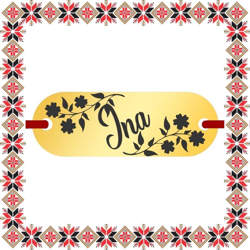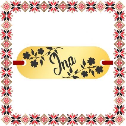 Bratara martisor cu pandantiv de inox in forma de placuta ovala de culoare aurie gravata cu crengute de flori si numele doamnei dragi din viata ta, Ina. Daruieste martisoare personalizate! Alege un martisor realizat din otel inoxidabil pentru ca primitoarea il va putea purta tot anul, fa-o sa zambeasca odata cu venirea primaverii!