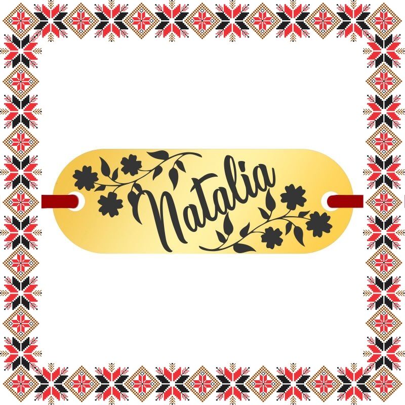 Bratara martisor cu pandantiv de inox in forma de placuta ovala de culoare aurie gravata cu crengute de flori si numele doamnei dragi din viata ta, Natalia. Daruieste martisoare personalizate! Alege un martisor realizat din otel inoxidabil pentru ca primitoarea il va putea purta tot anul, fa-o sa zambeasca odata cu venirea primaverii!