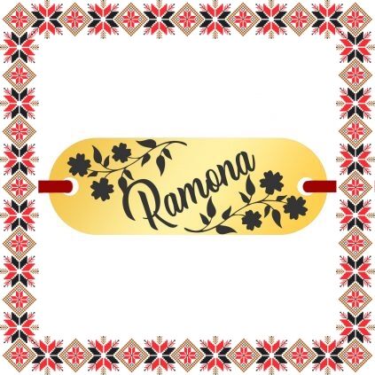 Bratara martisor cu pandantiv de inox in forma de placuta ovala de culoare aurie gravata cu crengute de flori si numele doamnei dragi din viata ta, Ramona. Daruieste martisoare personalizate! Alege un martisor realizat din otel inoxidabil pentru ca primitoarea il va putea purta tot anul, fa-o sa zambeasca odata cu venirea primaverii!