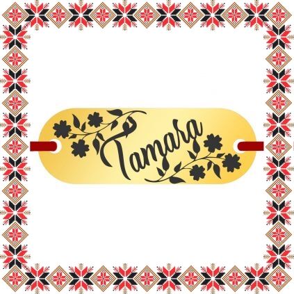 Bratara martisor cu pandantiv de inox in forma de placuta ovala de culoare aurie gravata cu crengute de flori si numele doamnei dragi din viata ta, Tamara. Daruieste martisoare personalizate! Alege un martisor realizat din otel inoxidabil pentru ca primitoarea il va putea purta tot anul, fa-o sa zambeasca odata cu venirea primaverii!