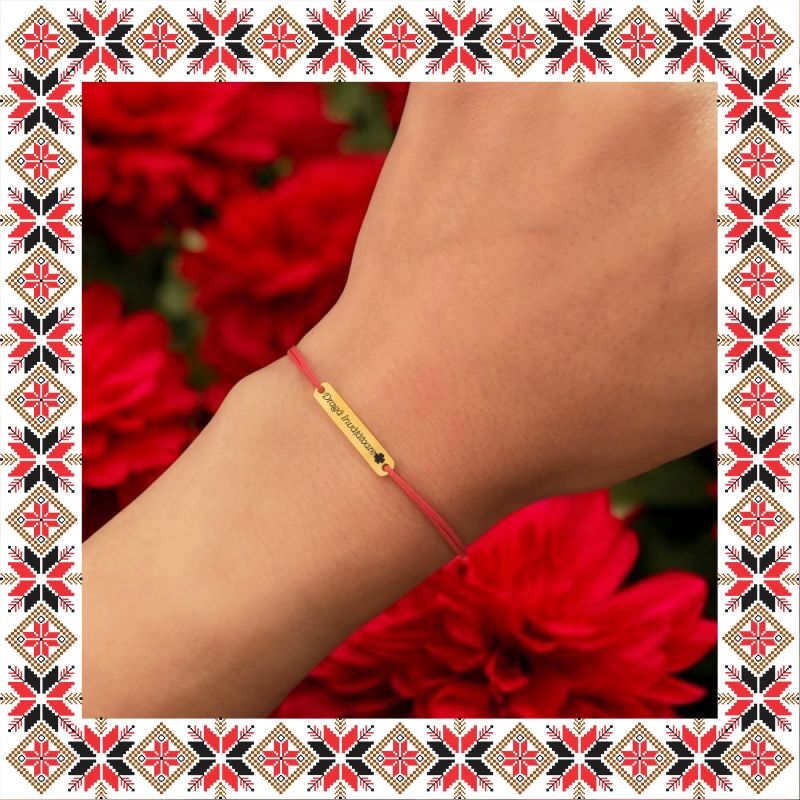 Bratara martisor cu pandantiv in forma de placuta dreptunghiulara de culoare aurie gravata cu trifoi norocos si mesajul Draga invatatoare! Alege un martisor realizat din otel inoxidabil pentru ca nu isi schimba culoarea, este rezistent in timp si poate fi purtat tot anul ca accesoriu bratara potrivit oricarei tinute. Ofera primavara in dar cu un martisor special! Gravam cu bucurie!