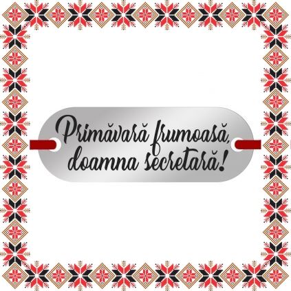 Bratara martisor cu pandantiv in forma de placuta ovala de culoare argintie gravata cu mesajul Primavara frumoasa, doamna secretara! Martisor personalizat cu drag pentru ea! Un martisor personalizat, incarcat de semnificatie, creat special pentru ea! Alege un martisor realizat din otel inoxidabil pentru ca nu isi schimba culoarea, este rezistent in timp si poate fi purtat tot anul ca accesoriu bratara potrivit oricarei tinute. Ofera primavara in dar cu un martisor special!