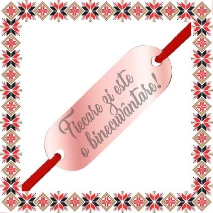 Bratara martisor cu pandantiv in forma de placuta ovala de culoare rose gold gravata cu mesajul Fiecare zi este o binecuvantare! Martisor personalizat cu mesaj motivational! Un martisor personalizat, incarcat de semnificatie, creat special pentru ea! Alege un martisor realizat din otel inoxidabil pentru ca nu isi schimba culoarea, este rezistent in timp si poate fi purtat tot anul ca accesoriu bratara potrivit oricarei tinute. Ofera primavara in dar cu un martisor special!