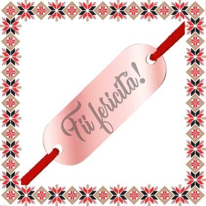 Bratara martisor cu pandantiv in forma de placuta ovala de culoare rose gold gravata cu mesajul Fii fericita! Martisor personalizat cu mesaj motivational! Un martisor personalizat, incarcat de semnificatie, creat special pentru ea! Alege un martisor realizat din otel inoxidabil pentru ca nu isi schimba culoarea, este rezistent in timp si poate fi purtat tot anul ca accesoriu bratara potrivit oricarei tinute. Ofera primavara in dar cu un martisor special!
