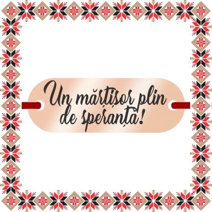 Martisor ambalat pe suport de carton de culoare bej in forma de costum popular romanesc cu motive traditionale. Plic de hartie imprimat cu motive traditionale romanesti CADOU!