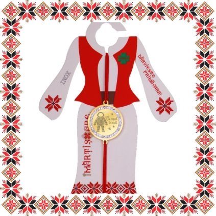 Martisor ambalat pe suport de carton in forma de costum popular romanesc de culoare bej cu motive traditionale romanesti. Martisorul este insotit de plic de hartie imprimat cu motive traditionale romanesti si snur de martisor. Deasemenea veti primi alaturi de martisor bucuria cu care noi l-am creat, tot ce trebuie sa faceti este sa adaugati bucuria daruirii si sa il oferiti persoanei dragi impreuna cu primavara.