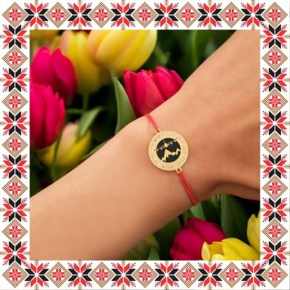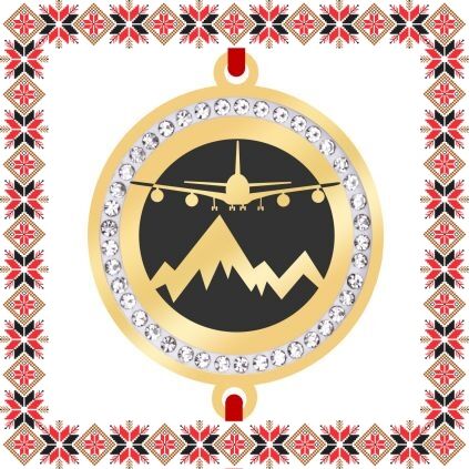 Bratara martisor cu pandantiv de inox in forma de banut de culoare aurie cu pietre multifatetate transparente, gravata cu peisaj montan si un avion in zbor. Martisor creat cu bucurie! Alege un martisor realizat din otel inoxidabil pentru ca primitoarea il va putea purta tot anul, fa-o sa zambeasca odata cu venirea primaverii!