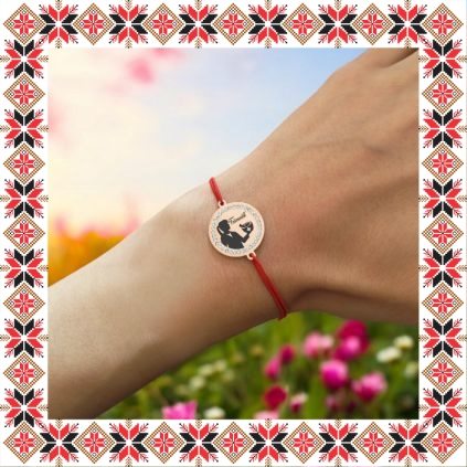 Martisor ambalat pe suport de carton in forma de costum popular romanesc de culoare bej cu motive traditionale romanesti. Martisorul este insotit de plic de hartie imprimat cu motive traditionale romanesti si snur de martisor. Deasemenea veti primi alaturi de martisor bucuria cu care noi l-am creat, tot ce trebuie sa faceti este sa adaugati bucuria daruirii si sa il oferiti persoanei dragi impreuna cu primavara.