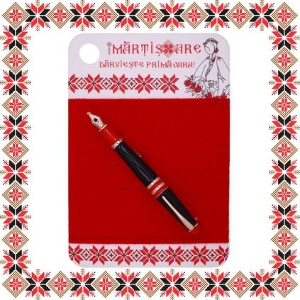 Brosa martisor in forma de stilou elegant realizata din email negru si rosu pe baza metalica de culoare aurie. Daruieste eleganta de martisor! Un martisor ideal pentru profesori, doctori, oameni de afaceri si scriitori!