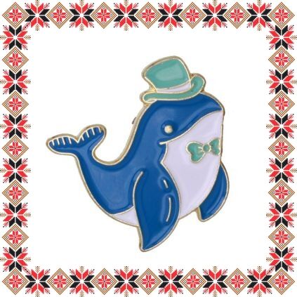 Brosa martisor in forma de balena cu papion si joben. Realizata din email albastru, alb si turcoaz pe baza metalica aurie. Brosa tip pin cu sistem de prindere ac. Un martisor potrivit pentru cei care iubesc marea si calatoriile pe apa si totodata pentru persoanele mereu elegante.