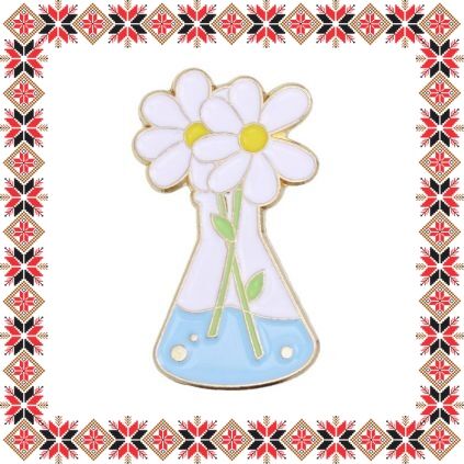 Brosa martisor in forma de epubreta cu flori. Realizata din email alb, verde, bleu si galben pe baza metalica aurie. Brosa tip pin cu sistem de prindere ac. Un martisor ce imbina armonios bucuria primaverii cu meseria primitoarei. Potrivit pentru chimisti, cercetatori, laboranti si studenti la medicina.