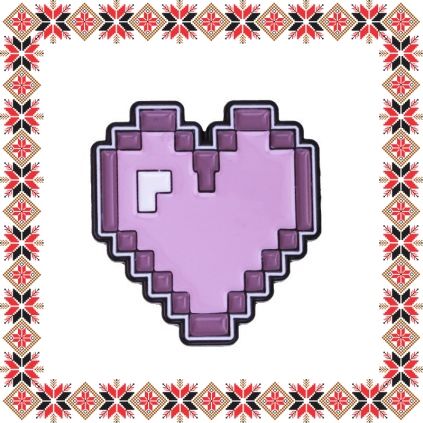 Brosa martisor in forma de inima cu contur pixelat, tealizata din email roz si mov pe baza metalica din aliaj. Brosa tip pin cu sistem de prindere ac. Un martisor care vorbeste despre sentimente, potrivit pasionatilor de grafica si iubitorilor de jocuri pe calculator.