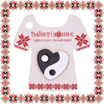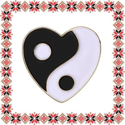 Brosa martisor in forma de inima cu simbolul Yin Yang. Realizata din email de culoare alba si neagra pe baza metalica aurie. Brosa tip pin cu sistem de prindere ac. Un martisor cu unul dintre cele mai cunoscute simboluri chinezesti de natura spirituala care vorbeste despre complementaritatea si armonia dintre lucrurile care aparent sunt contrare.