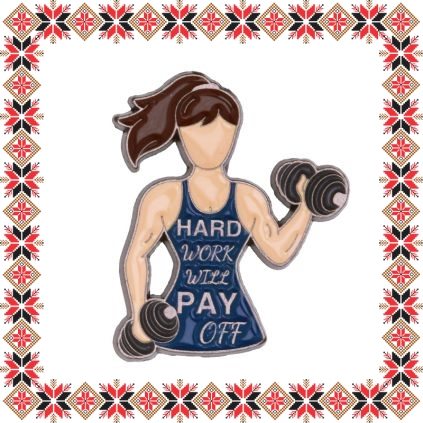 Brosa martisor reprezentand silueta unei sportive cu gantere si mesajul Hard work will pay off. Realizata din email maro, galben si bleumarin pe baza metalica din aliaj. Brosa tip pin cu sistem de prindere ac. Un martisor motivational potrivit doamnelor care au nevoie de un gand bun si putina incredere ca munca lor este rasplatita la final, sportivilor si tuturor celor care nu renunta niciodata.