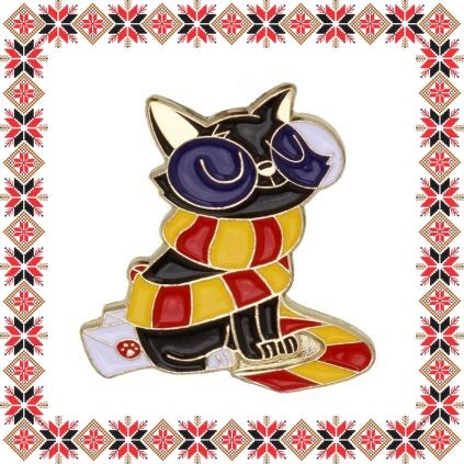Brosa martisor in forma de pisica cu ochelari si fular. Realizata din email de diferite culori pe baza metalica aurie. Brosa tip pin cu sistem de prindere ac. Un martisor ideal pentru cei pe care ii stii pasionati de lumi magice si povesti, iubesc pisicile si vrei sa ii faci sa zambeasca de 1 Martie.