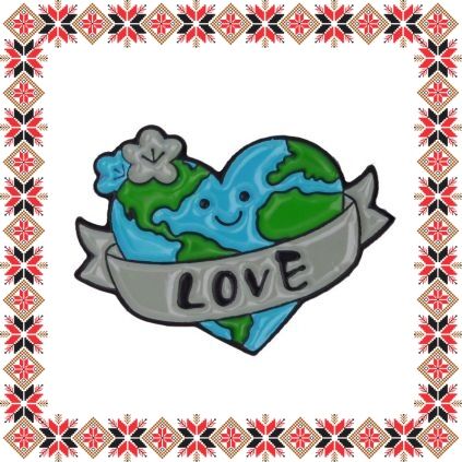 Brosa martisor in forma inima planeta Terra cu flori si cuvantul Love. Realizata din email de diferite culori pe baza metalica din aliaj. Brosa tip pin cu sistem de prindere ac. Un martisor potrivit celor care au grija de planeta noastra si ii iubesc, pretuiesc si protejeaza frumusetile.