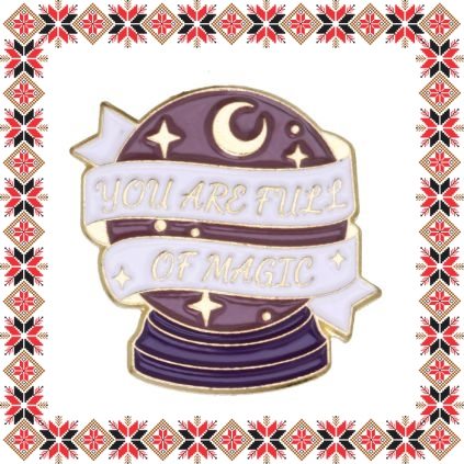 Brosa martisor in forma de glob magic cu mesajul You are full of magic. Realizata din email de culoare mov si alba pe baza metalica aurie. Brosa tip pin cu sistem de prindere ac. Un martisor potrivit tuturor celor care inca mai cred in magie si povesti.