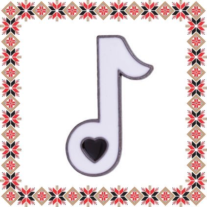 Brosa martisor in forma de nota muzicala cu inimioara. Realizata din email de culoare alba si neagra pe baza metalica din aliaj. Brosa tip pin cu sistem de prindere ac. Un martisor potrivit celor care pretuiesc muzica, instrumentistilor, compozitorilor si profesorilor de muzica.