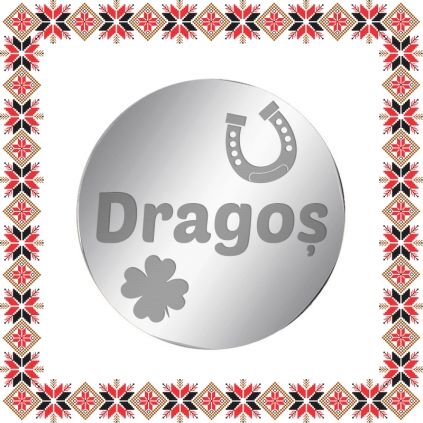 Martisor tip brosa gravata cu trifoi cu patru foi, potcoava si numele Dragos, pe baza in forma de banut de inox de culoare argintie. O brosa special creata pentru el cu care nu poti da gres, un mod original de a-i darui primavara. Martisor realizat din otel inoxidabil, un material rezistent care nu isi modifica culoarea sau aspectul in timp si care straluceste elegant, ca o mica bijuterie. Gravam cu bucurie martisoare special create pentru oamenii dragi din viata ta!