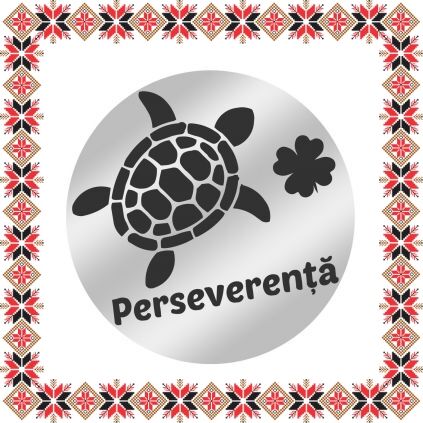 Martisor tip brosa gravata cu trifoi cu patru foi, broscuta testoasa si cuvantul Perseverenta pe baza in forma de banut de culoare argintie. Un martisor care vorbeste despre motivatie, perseverenta si ambitie. Martisor realizat din otel inoxidabil, un material rezistent ce nu isi modifica aspectul sau culoarea in timp, aspect ce face din acest martisor un accesoriu extrem de versatil, usor de asortat mai multor tinute vestimentare ce poate fi purtat si dupa sezonul de martisor atat pentru prinderea esarfei cat si ca accesoriu pe reverul sacoului/ paltonului sau pe geanta/ rucsac. Gravam cu bucurie martisoare special create pentru oamenii dragi din viata ta!