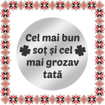 Martisor tip brosa gravata cu trifoi si mesajul Cel mai bun sot si cel mai grozav tata, pe baza in forma de banut de culoare argintie. Martisor realizat din otel inoxidabil, un material rezistent ce nu isi modifica aspectul sau culoarea in timp, aspect ce face din acest martisor un accesoriu extrem de versatil, usor de asortat mai multor tinute vestimentare ce poate fi purtat si dupa sezonul de martisor atat pentru prinderea esarfei cat si ca accesoriu pe reverul sacoului/ paltonului sau pe geanta/ rucsac. Gravam cu bucurie martisoare special create pentru oamenii dragi din viata ta!