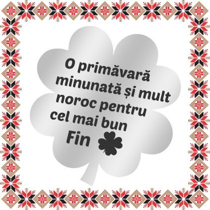Martisor tip brosa gravata cu trifoi si mesajul O primavara minunata si mult noroc pentru cel mai bun fin, pe baza in forma de trifoi cu patru foi de culoare argintie. Martisor realizat din otel inoxidabil, un material rezistent ce nu isi modifica aspectul sau culoarea in timp, aspect ce face din acest martisor un accesoriu extrem de versatil, usor de asortat mai multor tinute vestimentare ce poate fi purtat si dupa sezonul de martisor atat pentru prinderea esarfei cat si ca accesoriu pe reverul sacoului/ paltonului sau pe geanta/ rucsac. Gravam cu bucurie martisoare special create pentru oamenii dragi din viata ta!