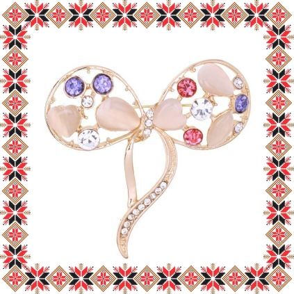 Martisor tip brosa in forma de fundita eleganta realizata din pietre multifatetate transparente si de diferite culori si pietre cat eye bej pe baza metalica aurie. Brosa cu sistem de prindere tip agrafa. Daruieste eleganta de martisor!