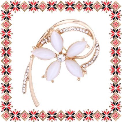 Martisor tip brosa in forma de floare stilizata stralucitoare realizata din pietricele multifatetate transparente si pietre cat eye bej pe baza metalica aurie. Brosa cu sistem de prindere tip agrafa. Daruieste eleganta de martisor!