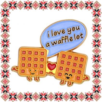 Martisor brosa tip pin in forma de waffles tinandu-se de mana si mesajul I love you a waffle lot, realizat in nuante de bleu, rosu si portocaliu pe baza metalica aurie. Brosele au devenit in ultimii ani extrem de populare si reprezinta un accesoriu prin care purtatorii isi pot manifesta sentimentele si isi pot expune lumii, personalitatea, pasiunile si preferintele. Martisorul poate fi purtat ca brosa dupa sezonul de martisor atat pentru prinderea esarfei cat si ca accesoriu pe reverul sacoului/ paltonului sau pe geanta/ rucsac.  Daruieste martisoare cu personalitate persoanelor dragi din viata ta!