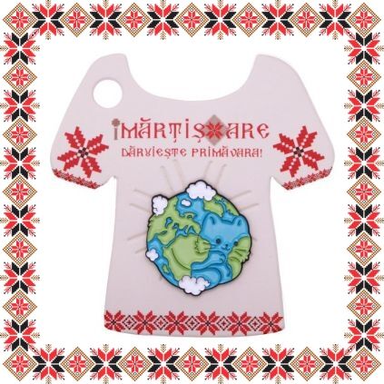 Martisor brosa tip pin reprezentand globul pamantesc cu o pisicuta si norisori, realizat in nuante de verde, bleu si alb pe baza metalica neagra. Brosele au devenit in ultimii ani extrem de populare si reprezinta un accesoriu prin care purtatorii isi pot manifesta sentimentele si isi pot expune lumii, personalitatea, pasiunile si preferintele. Martisorul poate fi purtat ca brosa dupa sezonul de martisor atat pentru prinderea esarfei cat si ca accesoriu pe reverul sacoului/ paltonului sau pe geanta/ rucsac. Daruieste martisoare cu personalitate persoanelor dragi din viata ta!
