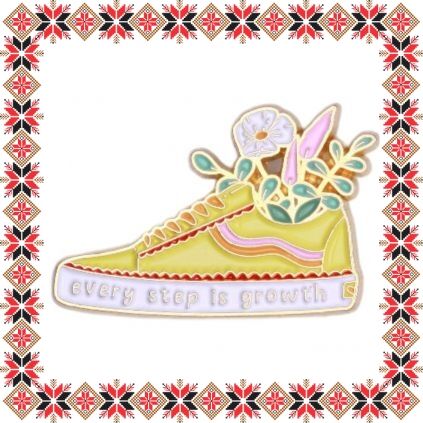 Martisor brosa tip pin in forma de pantof sport cu flori si mesajul Every step is growth (fiecare pas inseamna dezvoltare), realizat in nuante de galben si verde pe baza metalica aurie. Brosele au devenit in ultimii ani extrem de populare si reprezinta un accesoriu prin care purtatorii isi pot manifesta sentimentele si isi pot expune lumii, personalitatea, pasiunile si preferintele. Martisorul poate fi purtat ca brosa dupa sezonul de martisor atat pentru prinderea esarfei cat si ca accesoriu pe reverul sacoului/ paltonului sau pe geanta/ rucsac. Daruieste martisoare cu personalitate persoanelor dragi din viata ta!
